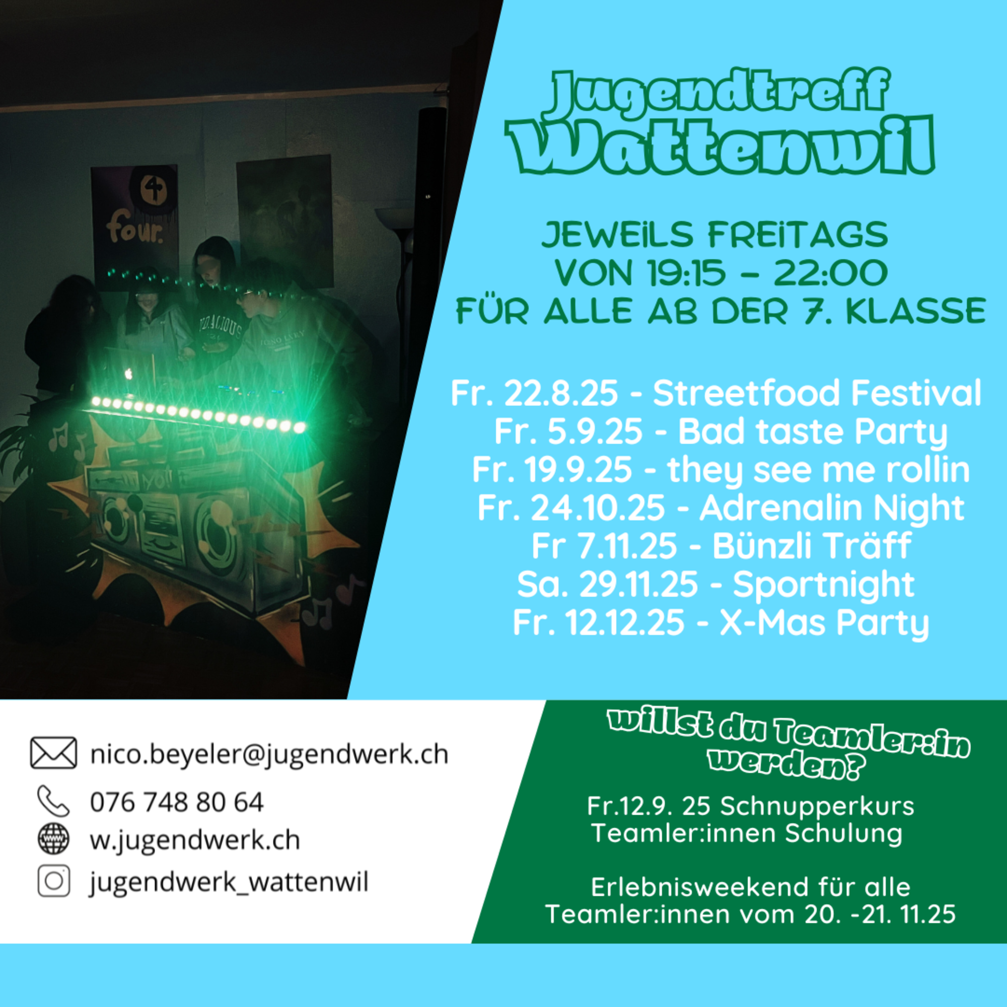 14 Vereine und Organisationen aus Wattenwil und Umgebung organisieren am Samstag 30. Mai 2026 ein Kinder- & Jugendfest. Ziel ist es, Kindern, Jugendlichen und Familien einen erlebnisreichen, spannenden und verbindenden Tag zu ermöglichen – und gleichzeitig den lokalen Vereinen und Organisationen eine Plattform zu bieten, sich der jungen Generation und ihren Familien zu präsentieren.